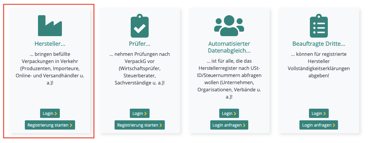 Registrierung bei der Zentralen Stelle Verpackungsregister